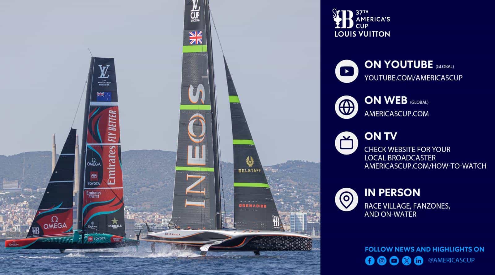 La Louis Vuitton 37ª America’s Cup será la más accesible en los 173 años de historia del evento, con varias opciones de visualización:La Louis Vuitton Regata Preliminar comienza el jueves 22 de agosto de 2024 en Barcelona con los cinco Desafíos y el Defensor, Emirates Team New Zealand. Están programadas cuatro pruebas de uno contra uno cada día en formato match-race. Los dos mejores barcos llegarán a una Gran Final de uno contra uno, donde el ganador se lo llevará todo, el domingo 25 de agosto. Las pruebas comienzan cada día a las 14:00 CET. Es la primera vez que los AC75 se enfrentarán entre ellos y se descubrirán muchas cosas sobre velocidades relativas y destreza en regata.VER LA COMPETICIÓN ONLINELa web oficial de la Louis Vuitton 37ª America’s Cup ofrecerá la regata en directo y de forma gratuita. También se transmitirán en el canal de YouTube de la America’s Cup y en la página de Facebook, cada día de regata a partir de las 14:00 CET.VER EN TVLa Louis Vuitton 37ª America’s Cup se emitirá en directo en más de 200 territorios en todo el mundo. Para ver las emisiones disponibles en su territorio, por favor haga click AQUÍ.VER EN PERSONALa sede de la Louis Vuitton 37ª America’s Cup ofrece oportunidades espectaculares para ver las regatas, que se celebran a unos pocos cientos de metros de la hermosa playa de la Barceloneta, que se extiende hasta el Port Olímpic, proporcionando el anfiteatro natural perfecto y gratuito.EL RACE VILLAGEEl Race Village oficial de la America’s Cup, situado a lo largo del Moll de la Fusta, abre sus puertas a las 12:00* y cierra a las 22:00, excepto los viernes y sábados, que cerrará a las 23:00. El acceso es GRATUITO, por lo que no se requiere la compra de entradas, pero existe un sistema de control de aforo para evitar aglomeraciones.FANZONESLas FanZones de la America’s Cup se encuentran en la Plaça del Mar y Bogatell. Permiten una visión directa del campo de regatas y de la acción en el agua. Las pantallas gigantes, que se activan cuando comienza el espectáculo del Race Village, permiten ver toda la acción una vez que comienza la regata. Las Fanzones también son de ACCESO GRATUITO, por lo que no hay que comprar entradas. El horario de apertura de las exposiciones, las acciones de los sponsors, la oferta gastronómica y de entretenimiento es de 12:00 a 20:00 en la Plaça del Mar, y de 12:00 a 22:00* en la Fanzone de Bogatell (excepto los viernes y los sábados, que cierra a las 23:00.PORT OLÍMPIC Y ÁREAS MIRADORLos equipos de la UniCredit Youth y Puig Women’s America’s Cup están situados en el Port Olímpic. Los juveniles tendrán cinco días de entreno antes del inicio de la regata, el 17 de septiembre. La final de la UniCredit Youth America’s Cup tendrá lugar el 26 de septiembre. La Puig Women’s America’s Cup también comienza con cinco días de entreno antes de su primer día de regata, el 5 de octubre, y la final es el 13 de octubre.El Port Olímpic y las playas de Sant Miquel, Barceloneta y Somorrostro son buenas opciones de visualización.*Los horarios de apertura pueden variar en los días sin regata.HOSPITALIDAD OFICIAL / EXPERIENCIA VIPEl Programa Oficial de Hospitalidad ha sido creado para llevar su experiencia en la America’s Cup al siguiente nivel. Con un énfasis especial en la gastronomía y el entretenimiento de las regatas, el AC37 CLUB ha sido diseñado para que se sienta como en casa, ofreciendo el máximo disfrute durante toda la competición.SOLICITAR AHORAEXPERIENCIAS EN EL AGUAReserve su experiencia en el agua para ver las regatas con Las Golondrinas y Sail & Charter y disfrute de una experiencia inolvidable desde una perspectiva única y privilegiada.RESERVAR CON SAIL & CHARTERRESERVAR CON LAS GOLONDRINASEN SU BARCOSalir a navegar es probablemente lo más cerca que puede estar de la acción en el agua y es una experiencia que no debe perderse. Si tiene su propio barco o tiene previsto alquilar uno, se habilitarán zonas para yates y embarcaciones pequeñas alrededor del perímetro del campo de regatas.Si tiene previsto salir al agua como espectador, entonces ES NECESARIO que visite nuestra página de información en el agua y reglas y que registre su embarcación para estar al día con las últimas comunicaciones.REGISTRAR SU EMBARCACIÓNCÓMO MOVERSELa mejor forma de llegar al evento es en transporte público. El acceso en vehículo privado está restringido. El acceso a la zona está garantizado para todo aquel que vaya a pie, en bicicleta o en transporte público. Es aconsejable planear sus itinerarios por el área con tiempo para encontrar la mejor opción.Para moverse por la ciudad, ver la competición desde las playas, y encontrar las mejores opciones de transporte, visite la web oficial de movilidad.Oscar Larios y Francisco Marín para EstiloBCN Magazine /// Síguenos también en TikTok